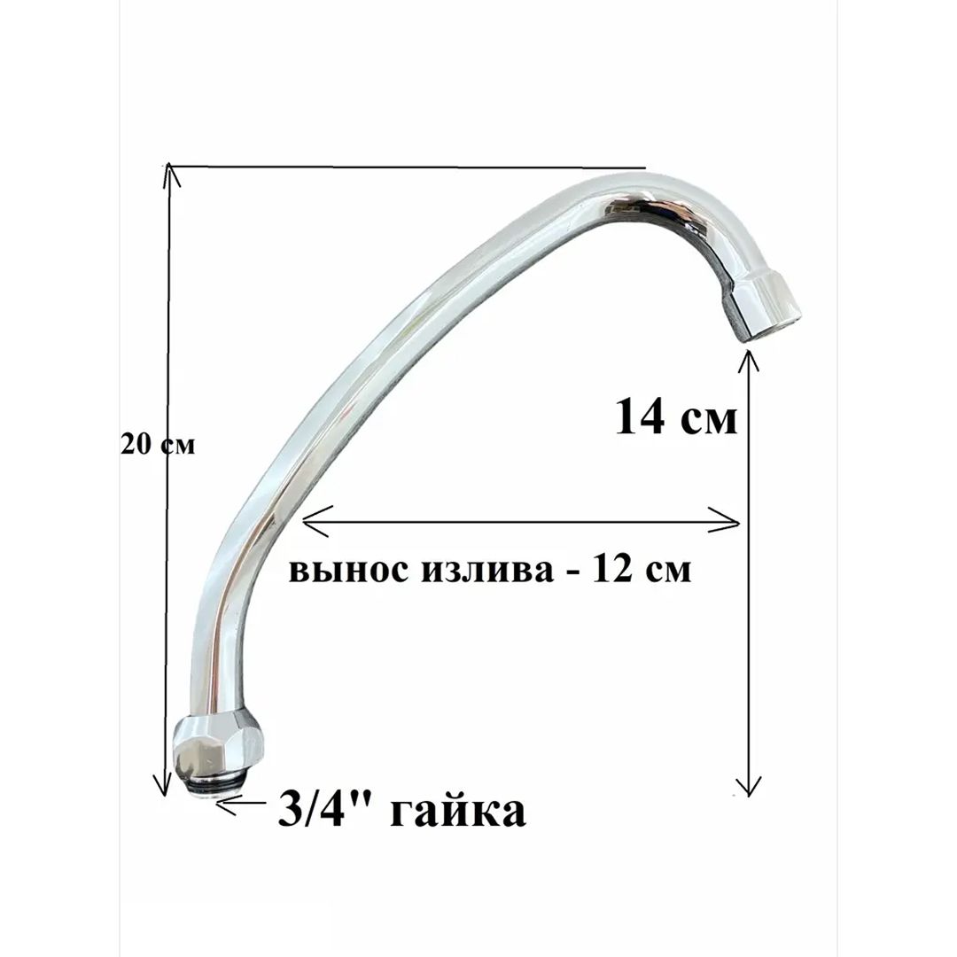 Излив для кухонного смесителя OUTE полная высота излива - 20 см, высота от основания до аэратора - 14 см, вынос излива -12 см, внутренняя резьба 3/4".