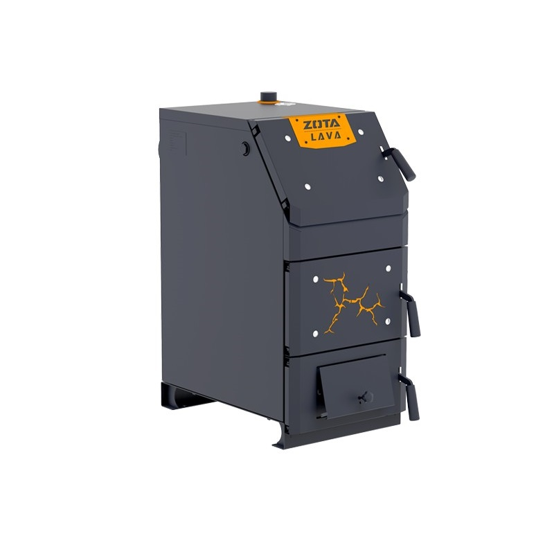 * загрузка топлива через наклонную топочную дверцу, закрывающуюся на замок;