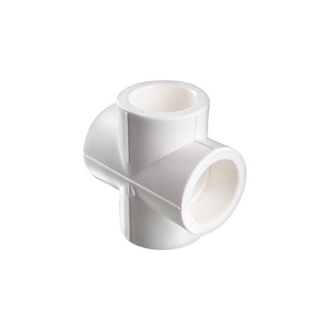 Фитинг для соединения четырех полипропиленовых труб равного диаметра (крестовина). Монтаж производится методом раструбной сварки.