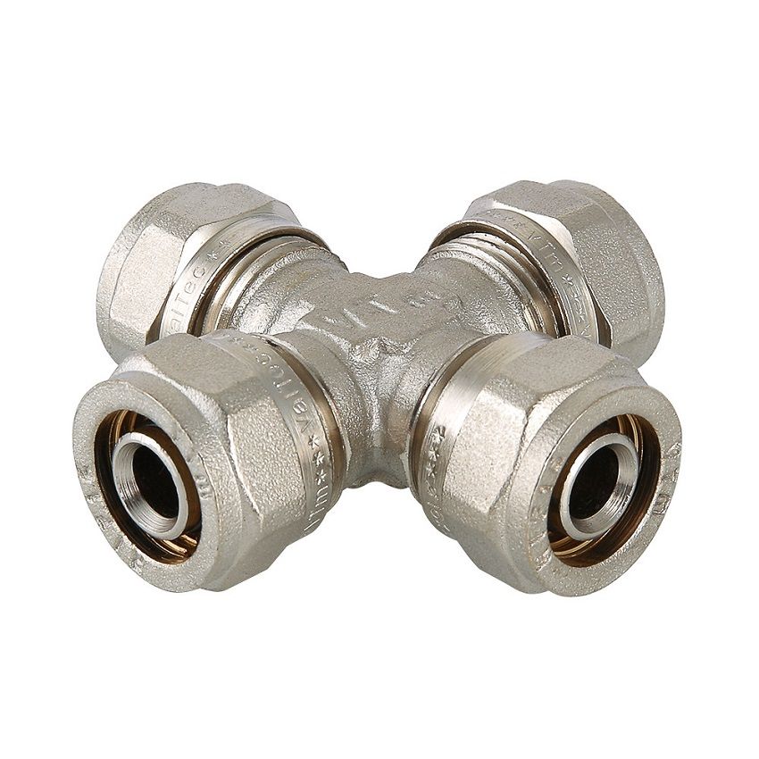 (VTm.341.N) Фитинг обжимной крестовина для присоединения металлополимерных (металлопластиковых) трубопроводов.