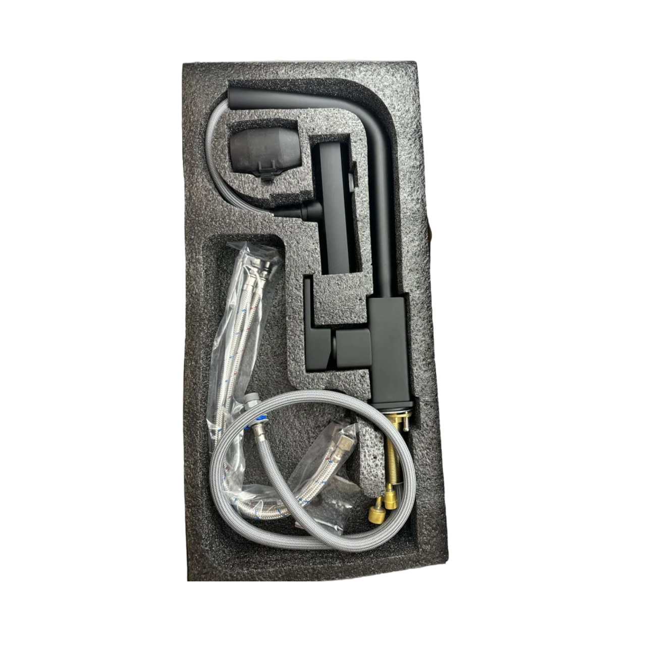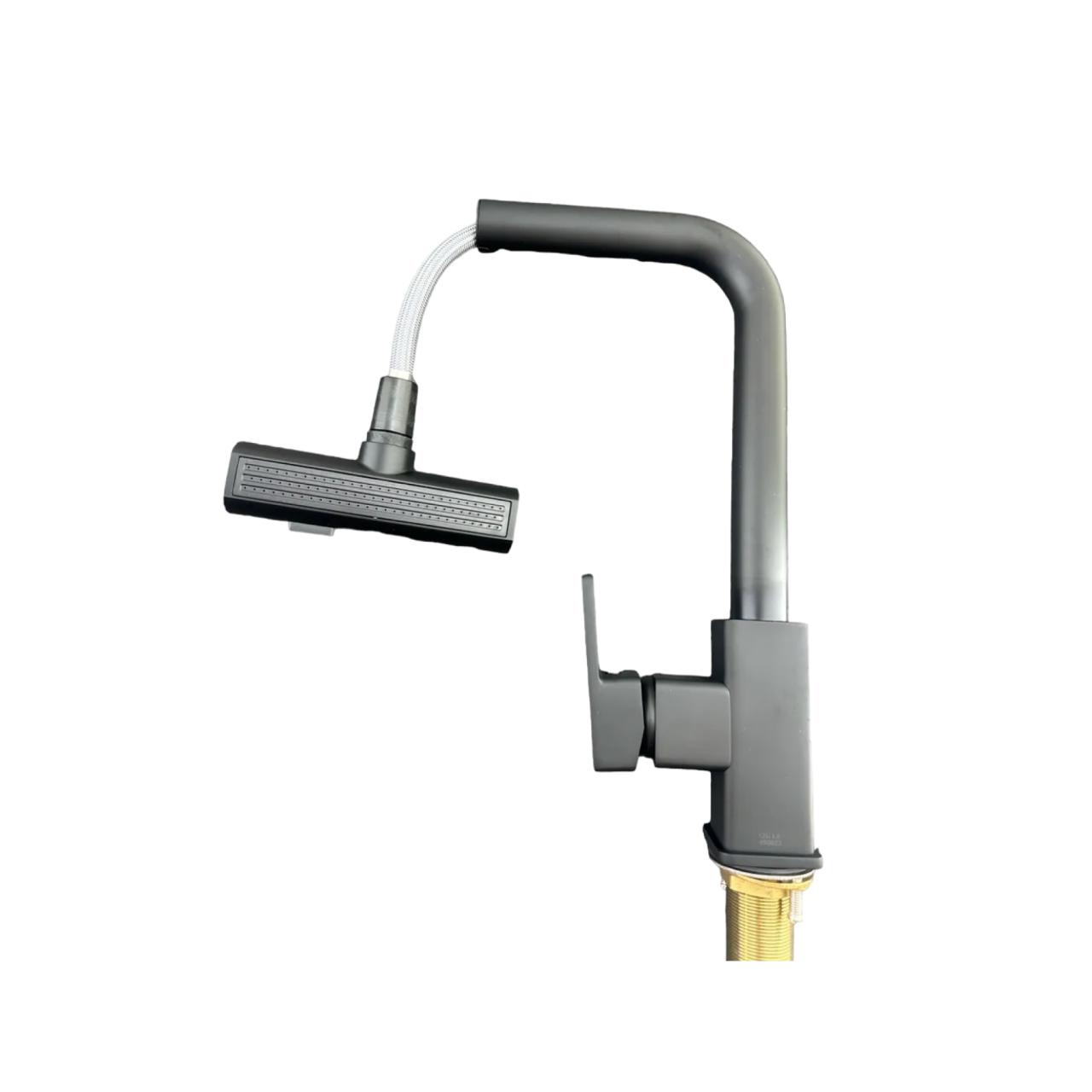 Кухонный смеситель с выдвижным изливом с водопадом 3 режима струи, чёрный T704H