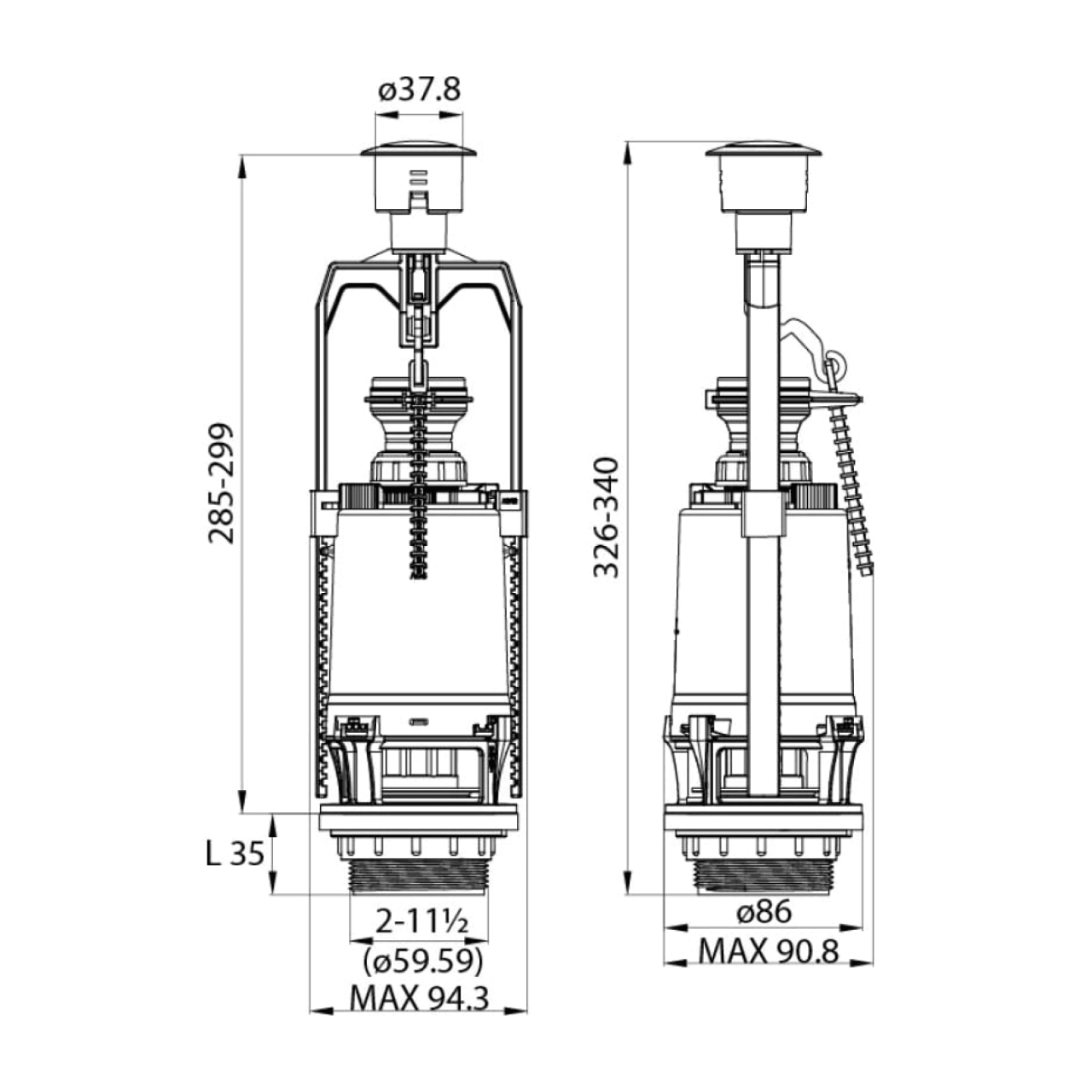 Одноуровневая водосливная арматура, нижний подвод, Тип А. круглая резинка,IDDIS