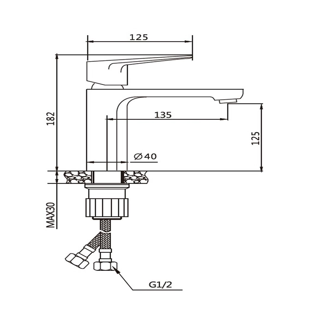 высота до излива: 125мм.