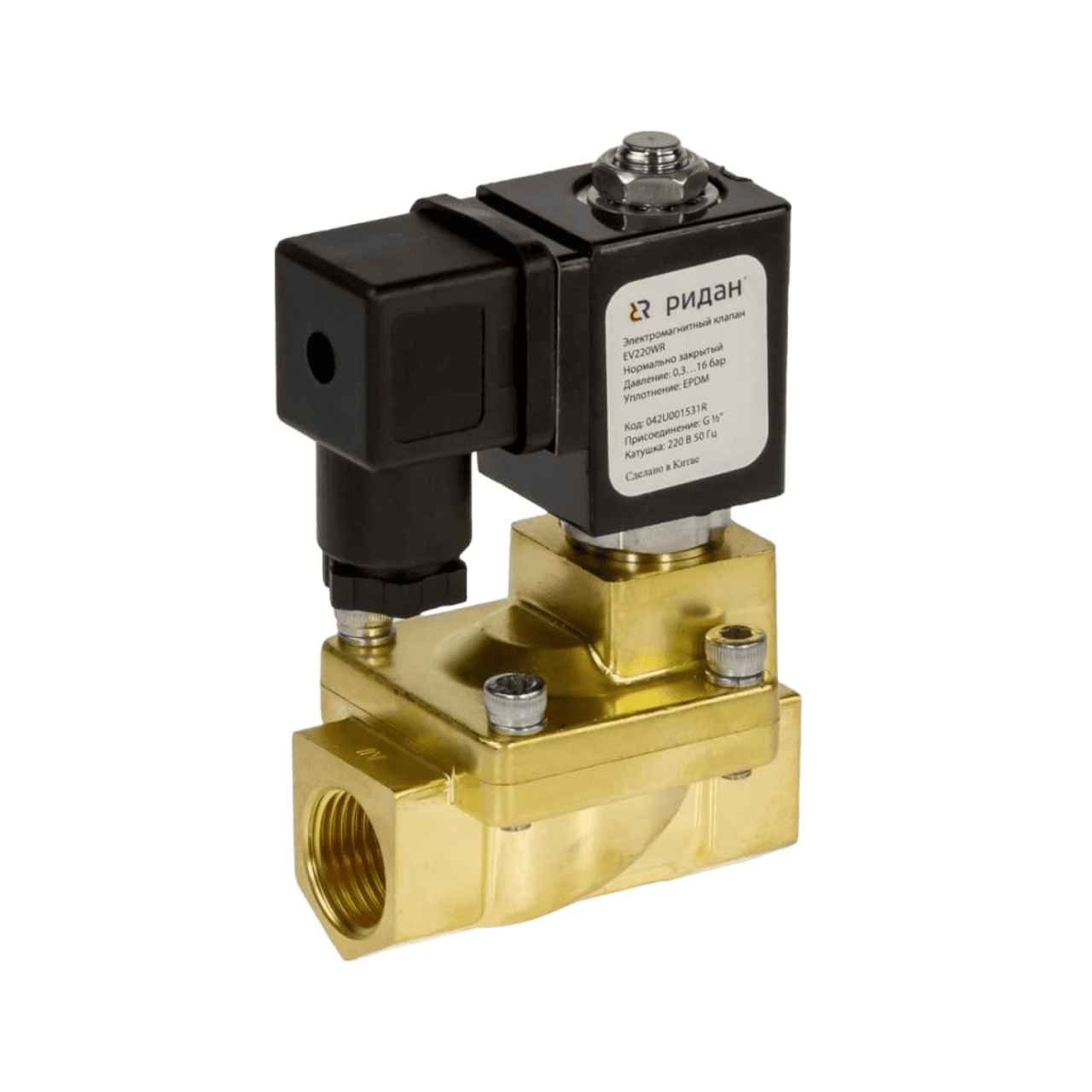 Соленоидный клапан РИДАН EV220WR, Ду50, НЗ, (0.3-16бар) -10..+130С (220В)