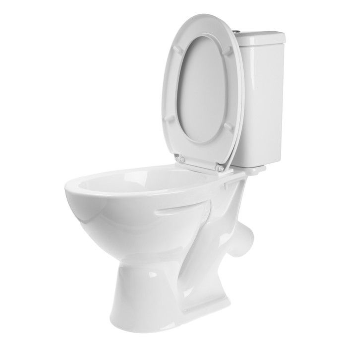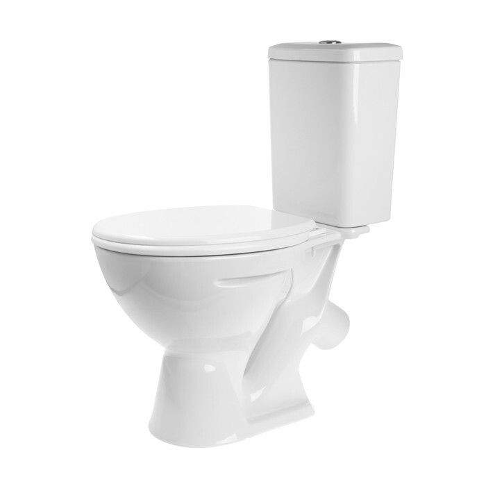 Унитаз-компакт «Казыр» с бачком воронкообразный с косым выпуском и цельнолитой полочкой.